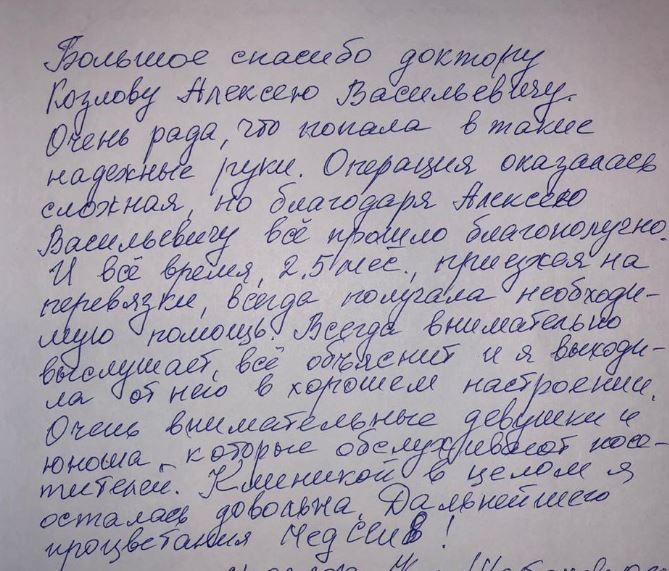Всем, кто столкнулся с какой-либо проблемой, я хочу пожелать ничего не бояться, идти к врачу и соблюдать все его рекомендации. Любой диагноз сегодня – это не повод для паники. Современная медицина способна на многое! Главное – найти своего доктора.