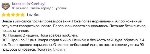Срок службы нового сустава – 15-20 лет. В случае необходимости возможно повторное эндопротезирование.